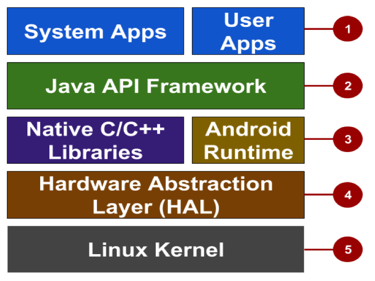 - '스택'이란 무엇인가 쌓여있는 구조라는 의미를 가지고 있고, 안드로이드는 소프트웨어를 쌓아 놓은 공개된 구조를 가지고 있음